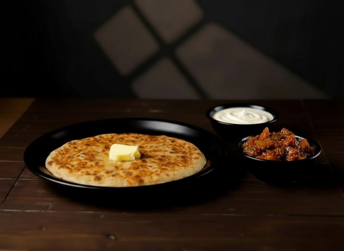 Crispy whole wheat dough, stuffed with spicy mashed potatoes, cooked in a tandoor, and served with rich butter and creamy yogurt!