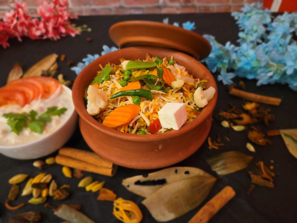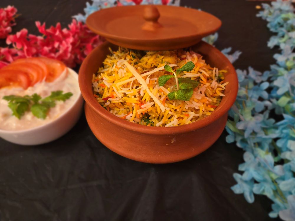 Aromatic basmati rice and chicken, cooked with spices and herbs, served with refreshing raita.