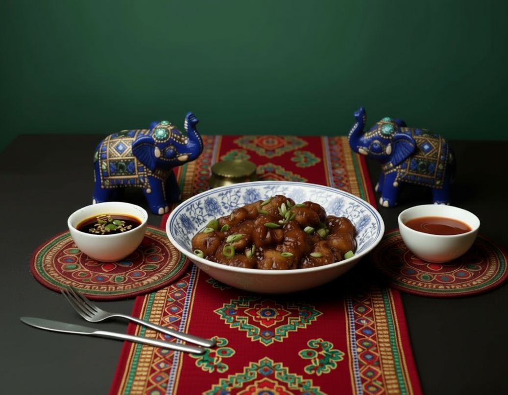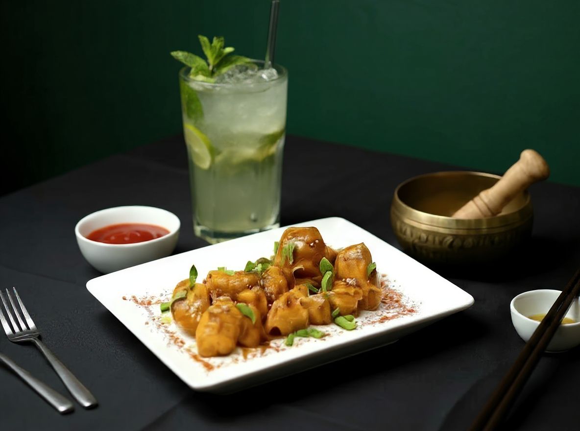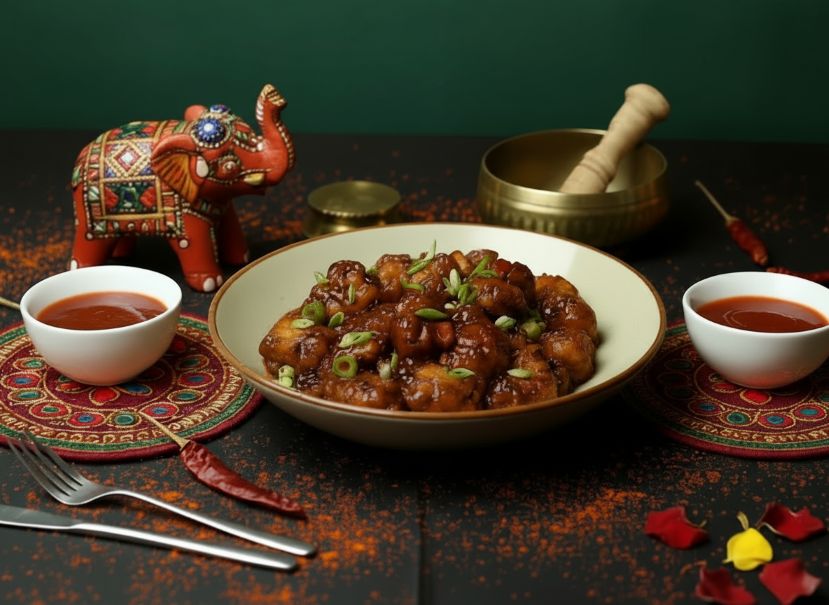 Crispy bite sized crispy chicken tossed in a flavorful Indo-Chinese sauce that balances savory, spicy, and tangy notes for a delightful culinary experience.