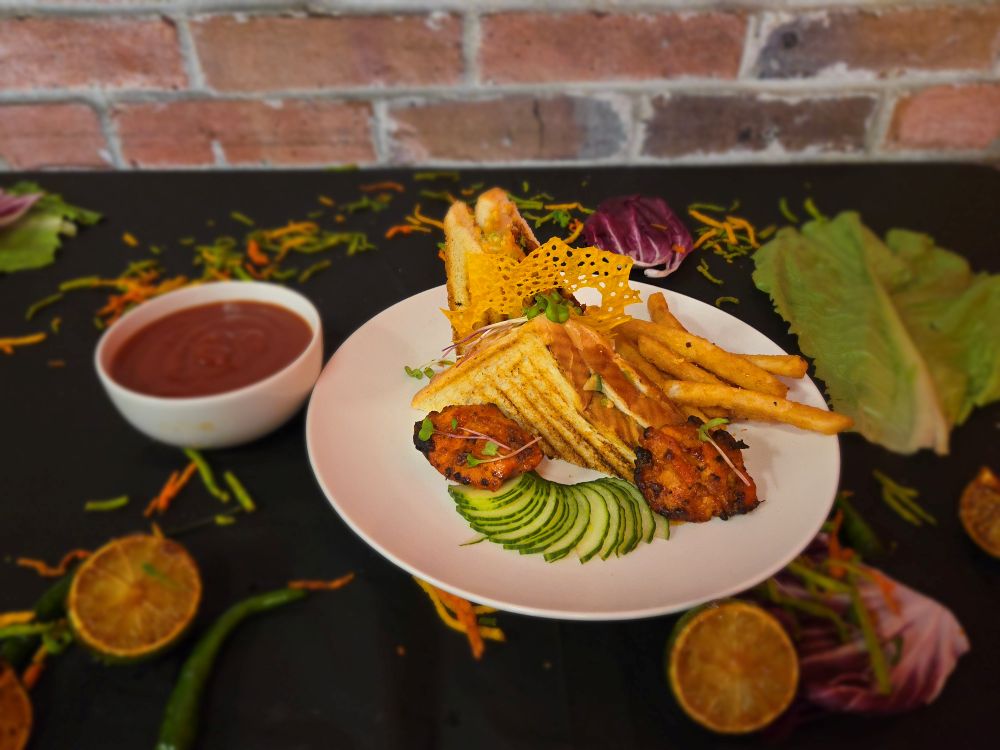 Desi style grilled sandwich with fresh vegetables, offering a delightful blend of flavors in every bite.