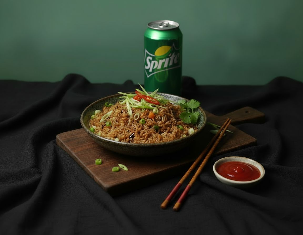 Classic Indo-Chinese stir-fry: boiled rice embraced by fluffy scrambled eggs and a colorful medley of bell peppers, carrots, and cabbage in savory soy sauce, chilli sauce and vinegar!