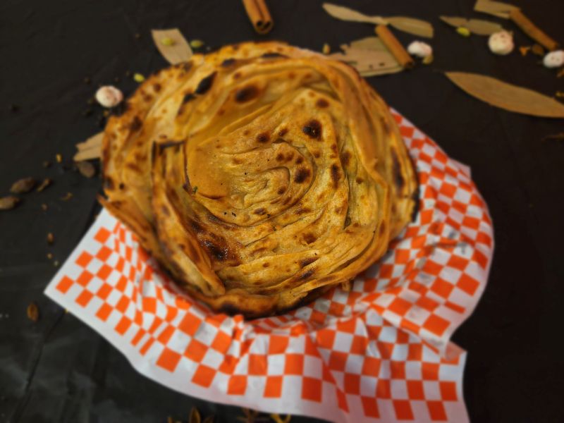 Layered Indian flatbread with a crispy texture, perfect for pairing with curries or enjoying on its own