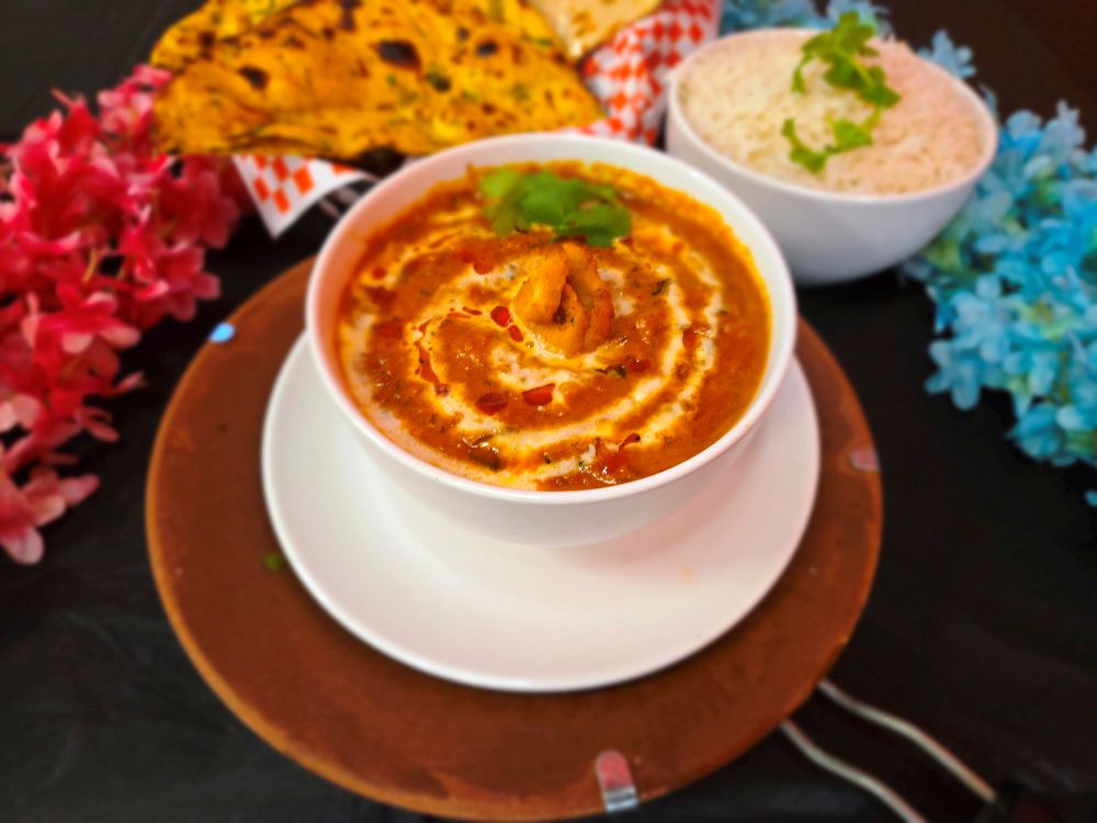 Black lentils in a creamy blend of butter, tomatoes, and aromatic spices for a rich, savory delight.